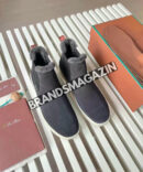Присутствие меха добавляет нотку эксклюзивности и тепла, что особенно актуально в прохладное время года. Эти ботинки не только защищают от холода, но и дарят ощущение уюта, что делает их идеальным выбором для осенне-зимнего сезона. Мех, использованный в производстве, отличается высоким качеством, что подчеркивает статус и престиж бренда Loro Piana.