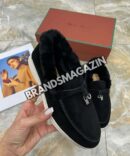 Чёрный цвет, в котором выполнены лоферы, является классическим выбором, который никогда не выйдет из моды. Он прекрасно сочетается с любыми нарядами, от строгих офисных комплектов до романтичных вечерних платьев. Этот универсальный оттенок позволяет создавать множество стильных образов, что делает лоферы Loro Piana идеальным дополнением к любому гардеробу. Они легко впишутся в повседневный стиль, а также станут изысканным акцентом в более формальных нарядах.