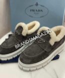 Серый цвет, выбранный для данной модели, является универсальным и легко комбинируется с различными оттенками и стилями. Он привносит в образ нотку сдержанной элегантности, что делает лоферы Prada идеальными как для повседневного ношения, так и для более формальных мероприятий. Они прекрасно дополнят как классические, так и современные наряды, добавляя им изысканности и шарма. Серый цвет также позволяет легко создать стильные образы, сочетая лоферы с брюками, юбками или платьями.