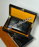 Изготовленное из высококачественной кожи крокодила, это портмоне сочетает в себе прочность и изящество. Каждая деталь, от текстуры до отделки, говорит о безупречном вкусе своего владельца. Чёрный цвет придаёт ему универсальность, позволяя легко сочетать его с различными стилями одежды — от делового до кэжуал. Это не просто функциональный аксессуар, а истинное произведение искусства, которое станет ярким акцентом в вашем образе.