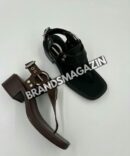 Коричневый цвет, как символ надежности и классики, в сочетании с глубоким черным оттенком, придает сандалиям MIU MIU особую выразительность и стиль. Это идеальный выбор для тех, кто стремится к гармонии в своем образе, сочетая актуальные тренды и вечные классические элементы. Эти сандалии прекрасно подойдут как для повседневных выходов, так и для более торжественных мероприятий, добавляя вашему стилю изысканности и утонченности.