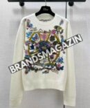 Классический белый цвет свитера делает его невероятно универсальным. Он легко сочетается как с джинсами, так и с юбками, позволяя создавать как повседневные, так и более формальные наряды. Вы можете носить его на работу, встречу с друзьями или даже на вечерний выход, не боясь выглядеть неуместно. Свитер Dior станет отличным дополнением к вашему гардеробу, добавляя в него нотки роскоши и стиля, которые так ценятся в мире моды.