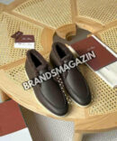 Коричневый цвет этих высоких лоферов символизирует классическую роскошь и универсальность. Он легко вписывается в любой стиль, будь то деловой, повседневный или даже вечерний. Такие лоферы прекрасно сочетаются с классическими брюками, а также с более расслабленной одеждой, создавая гармоничный и стильный образ. Мужчины, которые выбирают Loro Piana, выбирают уверенность и статус.